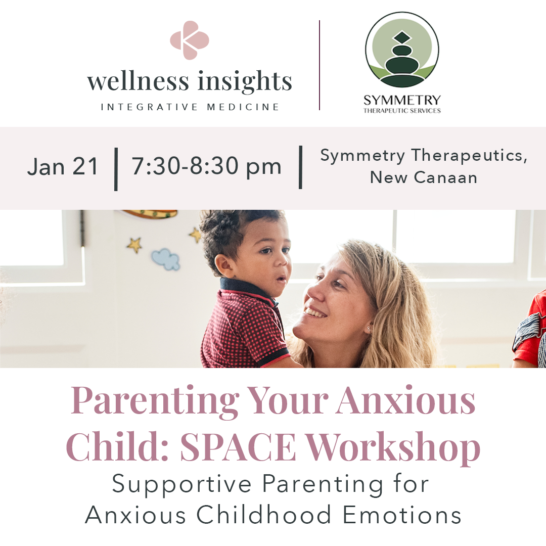 This three-part workshop will introduce simple, yet powerful steps you can take as a parent to reduce your child's anxiety by incorporating interventions grounded in the SPACE model, developed through the Yale Child Study Center. SPACE is as effective as more traditional therapeutic approaches, yet uniquely involves no child participation and is appropriate for all ages and developmental stages. Hosted by Symmetry Therapeutic Services, this workshop focuses on changes that parents can make to their own behavior to address and improve a wide-range of common issues, including: