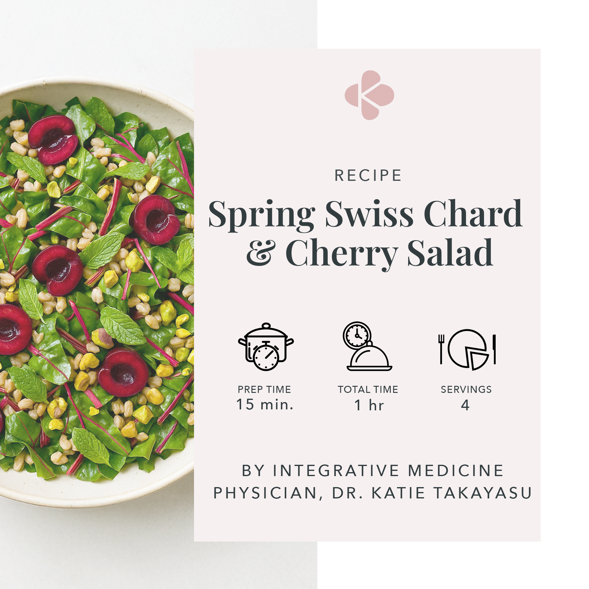 Spring Swiss Chard Salad with Farro, Cherries, Mint & Pistachios